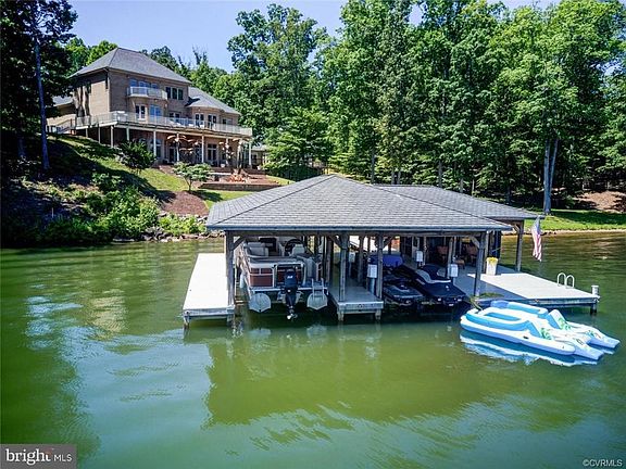 Resort style living in this gorgeous waterfront retreat, situated along the placid shores of Lake Anna - Virginia's best kept secret. No detail was omitted from this custom built residence that offers all the bells and whistles. Features a massive finished basement for entertaining. Including 5 bedrooms, 3.5 bathrooms & a home office. Relax in over 6,000+ spacious square feet with amenities galore, including an intercom system on all three levels, 6 zone audio system, double sided fireplace, bar area, master suite, Pella designer windows, clear deck railings, 50 year 3 dimensional shingles, gourmet kitchen with granite counters, stainless appliances & so much more. Stroll down to the water's edge, past the fire pit & impeccable hardscaping & landscaping that envelopes this residence, & step onto your large boat dock (8 ft deep at end of boathouse), with two boat slips (1 slip set up for 4 jet skis) electric lifts, storage room, sun deck, screened in area & your own private sandy beach. This residence is nestled perfectly on 2.12 acres & offers spectacular open views & calming privacy. 2 car attached & a 2 car detached garage. Schedule your tour today; this one will blow you away.