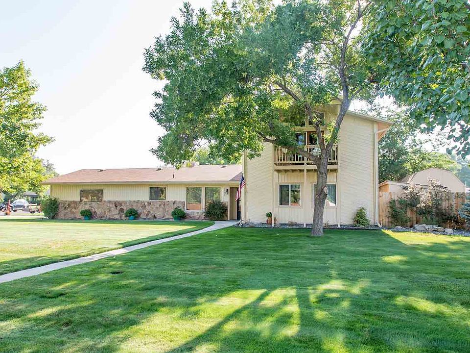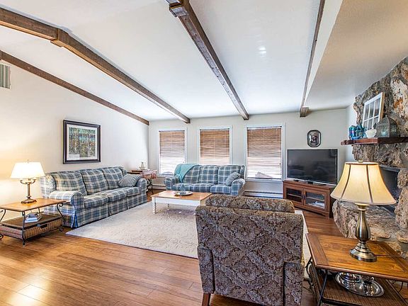 Walk into this home to be greeted by soaring vaulted ceilings, a beautiful rock gas fireplace & bamboo floors in the living room. The dining room seats loads of people! The centrally located kitchen allows the cook to be part of the party, with granite counters, marble backsplash, quartz sink & French doors out to the stunning back yard with a covered deck for great entertaining most of the year and a beautiful pool. The downstairs master suite has a 7' x 6' sitting area with sliding glass doors to the patio, a private bath with double sinks & walk-in closet. The 2nd bedroom downstairs has room for two twin beds and lots of storage with a 2nd shelf in the closet. The upstairs Master Suite is wonderful, with vaulted ceilings and windows for the morning sun. New tile in the bath & double sinks. Enjoy the balcony off of the office/bonus room. Two swamp coolers, 12x16 shop, and more!