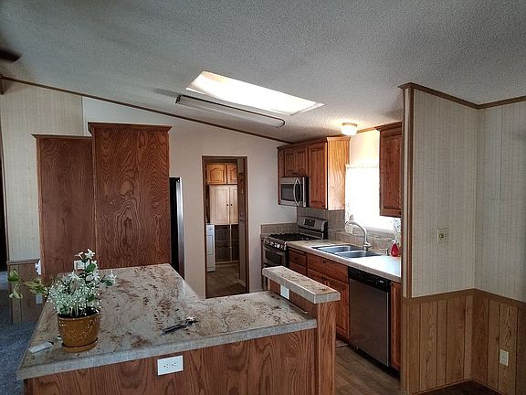 This move in ready home located in Granger Park 55+ Community includes new windows, carpet, and an updated kitchen. Dining has built-in hutch. Den/ Bonus room could easily be converted into 3rd bedroom. Extra storage with a garden shed and workshop added to the back of an enclosed 1 car garage. RV storage available, backyard is fenced and ready for your pet. Roof is under 5 years old. Lot rent is $640/mo + utilities.