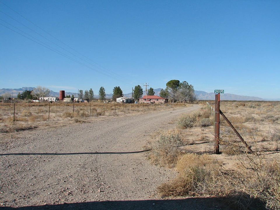 Small Farm on paved Parker Road. THREE IRRIGATION WELLS and one domestic well. Older ''cowboy cottage'' needs some TLC. Separate shop/storage bldg. Arena, fields all fenced on the perimeter. In the heart of San Simon Pecan/Pistachio Tree growing area. New Pistachio Orchard across the street !!