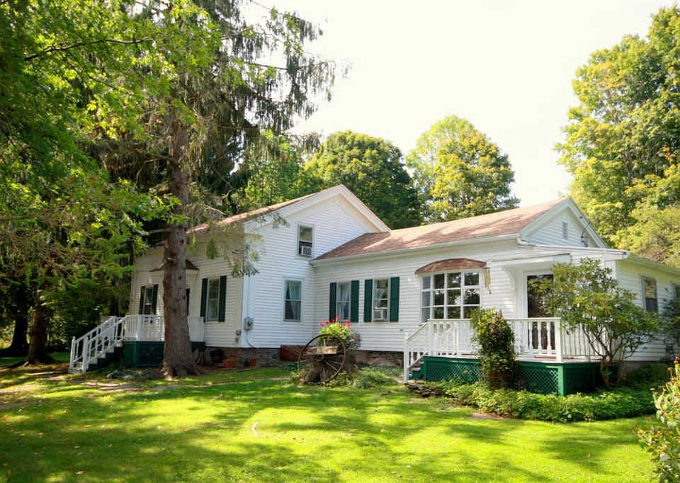 Country haven! 4 bedrooms, 2 full baths on acreage! A rare combination of old beauty and charm with meticulous modern improvements. Nestled on a back road, this gem has a stunning view of fields, open skies, and sloping hills. Set on 7.8 acres with a splendid back field perfect for animals and a large yard containing pines, flower beds, birches, and apple trees. A stone wall crosses one edge near the 100 x 100 foot organic garden and compost system. Walk into a heated mudroom and then into the living room with a massive bay window. The Vermont Castings wood stove sits under a new tin ceiling. Move into a kitchen out of Country Home Magazine with its custom maple counters and cabinetry, original wood beams, and stainless steel appliances. The innovative cork flooring is subtly gentle on the feet and holds the kitchens warmth. Follow sunbeams into an expansive dining room across warm butternut wide plank floors. Another cozy living room rests behind large French doors. The first floor master and en-suite full bath is its own oasis. Large windows and glass doors onto a private back deck. Listen to the birds as the sun rises behind the distant hill. Add in a large screened three season porch, another first floor full bath and three large upstairs bedrooms. A separate laundry room leads to the one of the cleanest stacked stone basements you've ever seen! Kept warm and dry with a full house exterior French drain. Property has both well and fresh spring. Add in the plumbed gardening shed with workshop and the two car garage- wow! Only 15 minutes from Oneonta! And 15 min from Delhi! This house WON'T LAST!!