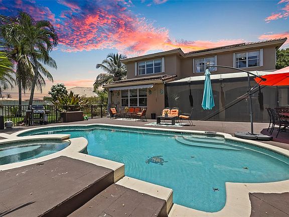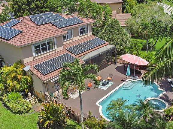 Price to sell!!! Sought-after Monarch Lakes/ Tequesta Cove gated community, this two-story gem boasts 4 beds plus a den (easily convertible to a 5th bedroom) Plus 3 full bathrooms and 1/2 Bath for guest. Situated on an expansive lot with a heated pool and jacuzzi, as well as a screened covered patio ideal for entertaining, beautifully landscaped tropical oasis complete with palm, coconut, mango and avocado trees. Featuring two master bedrooms, one conveniently located downstairs with its own private entrance and bath, this home offers luxurious touches like Zebra blinds, an alarm system, Recently renovated, the home boasts a chef's dream kitchen with double oven and gas stove, plus enjoy significant energy savings with 31 solar panels and a tankless hot water heater. Price to sell! Sought-after Monarch Lakes/ tequesta Cove gated community, this two-story gem boasts 4 beds plus a den (easily convertible to a 5th bedroom) Plus 3 full bathrooms and 1/2 Bath for guest. Situated on an expansive lot with a heated pool and jacuzzi, as well as a screened covered patio ideal for entertaining, beautifully landscaped tropical oasis complete with palm, coconut, mango and avocado trees. Featuring two master bedrooms, one conveniently located downstairs with its own private entrance and bath, this home offers luxurious touches like Zebra blinds, an alarm system, Recently renovated, the home boasts a chef's dream kitchen with double oven and gas stove, plus enjoy significant energy savings with 31 solar panels and a tankless hot water heater.