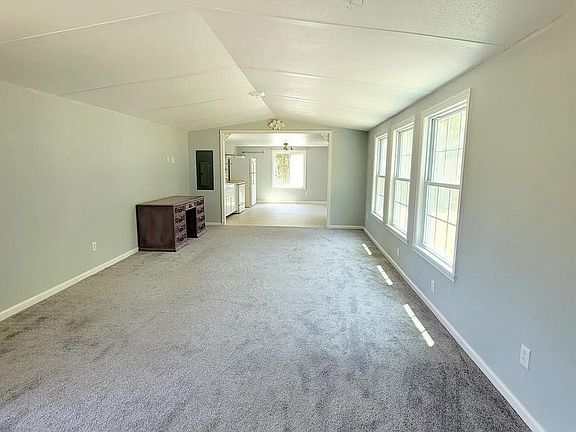 Make sure you look at all this property has to offer! Open concept 1 bed/1 bath manufactured home on tall permanent concrete block foundation which sits on a concrete pad giving a large dry crawlspace. 7 acres, mostly wooded making it a great property for hunting! Home was totally remodeled including new wiring, plumbing, insulation, plywood, drywall, shingled roof, new vinyl siding, windows and doors. Other features include shed, concrete patio, solar powered roof fan, and central heat and air plus RV hookup with electric. Don't miss out on this property! Schedule your showing today!