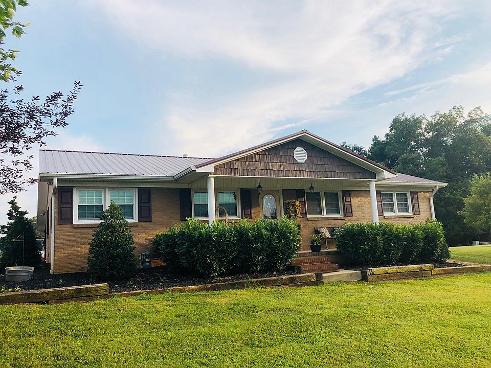 4 BR 2.5 bath brick home with semi-open floor plan sitting on 8 acres just outside of town. Remodeled kitchen & baths. Large detached garage. Covered patio off the back of the house with lots of afternoon shade. Hardwood floors. Semi-finished basement with a large bedroom, full bath and den area. Don't wait!