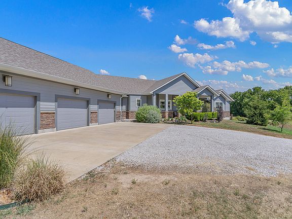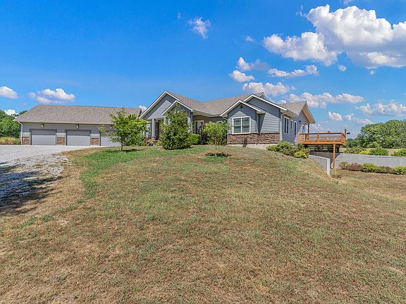 Built in 2017, this mostly one level home is situated on 10 acres with a view of the countryside. The exterior is Hardie Board siding and an oversized 3 car garage. Inside is an open floor plan which features a great room, eating area and kitchen all open to each other with beautiful hardwood flooring. The deluxe kitchen has granite counters, a gas range, double ovens, farmers sink, and custom cabinets with soft close drawers. There are two pantries; one in the kitchen and one close by. The three bedrooms on the main level feature the split plan. The two guest bedrooms have a jack n' Jill bath. The master bath has a bubble tub, walk-in shower, and walk-in closet. For a 2nd living area, there is a partial walkout basement which has a rec room and full bath. The garage has 1475 sq. ft. with 12' ceilings, shelving for storage and stairs leading to a room above the garage. This could be a teen's hangout, storage space, workout room or whatever. In back is a covered wrap around deck. Enjoy the privacy and serenity of this home in the country. Springfield address, but Willard schools.
