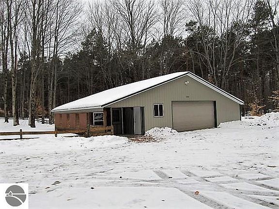 SPACIOUS....The home, the lot, the detached garage. This 3 bedroom home sits on over 5 wooded acres just outside of Kalkaska. It has a private master suite along with main floor laundry and deck off the dining room which looks out into the woods. The oversized detached garage has an enclosed sun porch. Man Cave, She Shed, a play house for the kids, lots of possibilities.