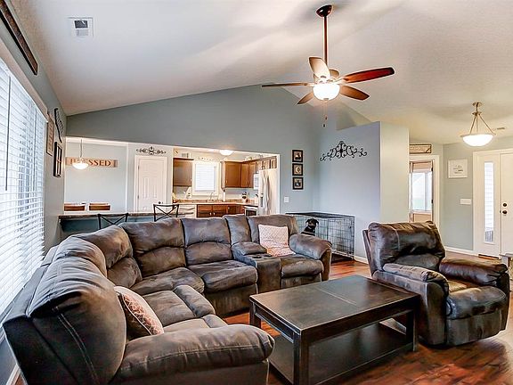 Better than Brand new!! This newer 3 bedroom ranch in Towne Square is looking for its new owner!! This home boasts a split bedroom floor plan, 3 bedrooms, 2 bathrooms and an open concept layout! From the minute you walk througg the door you will be amazed by the cathedral ceilings, gorgeous new flooring, fresh paint and all the natural light that's on provides! Spacious living room open to the kitchen is a great entertaining space! The large eat in kitchen with pantry provides ample storage space along with A breakfast bar for extra seating. The large master suite provides natural light, walking closet and a private master bath! This home also has two good-sized bedrooms perfect for family or gas! Step outside to the large backyard complete with a great patio and plenty of room to run! This home qualifies for 100% USDA financing and is close to shopping, schools and restaurants! This home truly is a must see!!