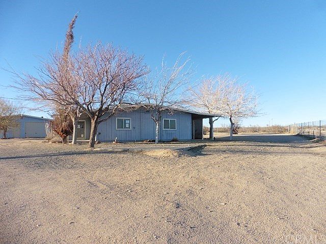 Great location for this home in North Joshua Tree. This property has a large kitchen, living room and 3 bedrooms. There is a detached garage and a storage building too. The parcel is partially fenced. Nice expansive desert views.