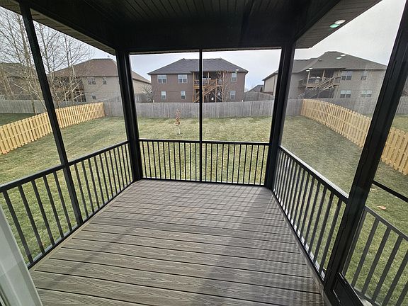 Brand new! Appr 2020 sq ft ! North side of Ozark!! Only a few min to Hwy 65/CC So much room! ! Finished in Jan of 2025! Versatile plan allows an (optional) 4th BR or a 2nd living area, 3 baths and oversized garage. . PRIVACY fenced, FULL yard irrigation and landscaping in front Built by JK Construction, Inc (onsite builder with 30 yrs experience).Backing to the south, you can enjoy your morning coffee from your SCREENED, covered deck ! Equipped with a sound system inside and on the deck...the main level offers an open floor plan. Master bedroom with tiled,step in shower ,dual vanities and spacious walk-in closet with wooden shelving and a built-in chest-of-drawers!Also, a 2nd BR, full bath . on the main level. The lower level offers a family room (or 4th BR). a third Bedroom,measuring 10x15 , a full bath, high ceilings thru out majority of the home !The garage has (approx) 6 ft additional room for exercise equip, work bench, hobbies etc. (25' deep) The cabinetry is white and includes a built-in pantry, roll-out drawers in cabinetry and an area for the trash can located in the island..Beautiful granite, stainless steel appliances with gas range , Dishwasher, disposal, & microwave are all included.Tile in baths/laundry,. Luxury vinyl plank in living areas,,kitchen, hallways,carpet in bedrooms and closets. Interior color is light gray.! Buyers to verify school districts. This development includes a swimming pool that is already in place.