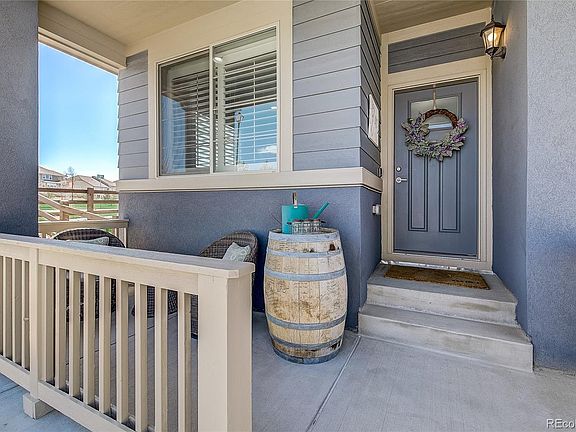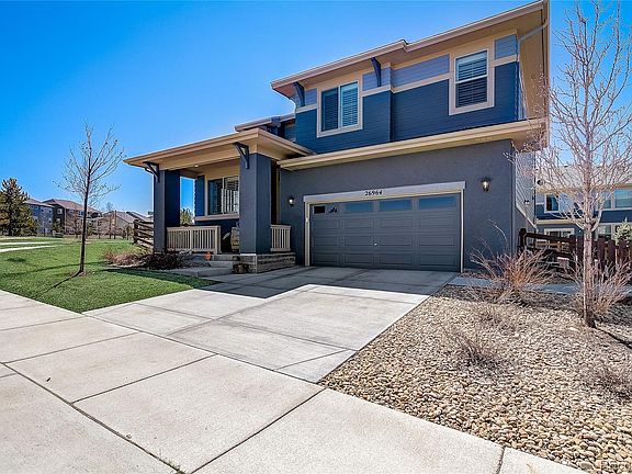 Home-sweet-home is awaiting you with all of these thoughtfully upgraded modern touches! A large covered patio greets visitors as they approach the front door, providing an ideal space to relax or watch the kids play. As you step inside, charming hardwood flooring welcomes you into an open, light-filled floor plan accented with contemporary finishes, plantation shutters, and a neutral color palette. A private study with french doors is located at the front of the home and provides an ideal workspace. Enjoy whipping up homemade meals in the updated kitchen, which features quartz countertops, sleek stainless steel appliances, including a gas stove, recessed lighting, farmhouse sink, a large pantry and expanded island with counter seating. It's the perfect spot to entertain or wind down after a long day. The open-concept kitchen flows seamlessly into the family room and out onto the expanded covered patio complete with a sound system.Venture upstairs to the open loft,2 secondary bedrooms, full bathroom, Master Suite and conveniently located laundry room. Rest and relaxation awaits you in the serene master suite with tray ceilings, walk-in closet, and a spa en-suite bathroom complete with a large soaking tub. An unfinished basement awaits your finishing touches and offers great additional future living space. Wonderful community amenities include infinity pool, recreation center, parks, extensive trail network and easy access to Aurora reservoir. Great location in the award-winning Cherry Creek School District and just minutes to shops, restaurants and more. Easy access to E-470 and main roads. This home is a gem not to be missed! BRAND NEW ROOF 12/19