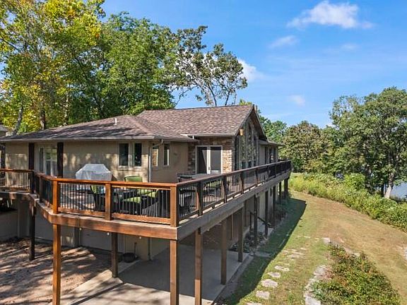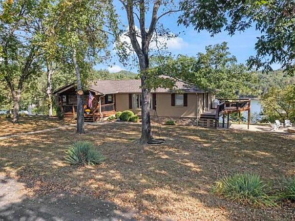 This furnished home, with private dock and golf cart. Nestled amidst the tranquil beauty of nature, this Table Rock lakefront home is a sanctuary of peace and serenity. Situated on the shores of this popular lake, this property offers an idyllic retreat for those seeking the perfect blend of comfort and natural beauty. Step outside onto the sprawling back deck, and you'll discover the true gem of this property--a private dock extending out into the bluewaters of the lake. Whether you're an avid boater, a fishing enthusiast, or simply looking to relax by the water's edge, the dock provides the perfect spot. Entering the home, you'll find an open and inviting interior. The living room features vaulted ceilings and a wall of windows that bathe the space in natural light. The furnishings are comfortable and elegant, offering a perfect balance between luxury and coziness. One of the standout features of this home is the primary bedroom, which offers breathtaking views of the lake through large windows. The room is designed with relaxation in mind, featuring a spacious ensuite bathroom, a walk-in closet, and a private balcony where you can sip your morning coffee while listening to the gentle lapping of the water.Surrounded by lush greenery, this lakefront home offers a haven of tranquility and a connection to nature that is second to none. It's a place where you can escape the hustle and bustle of everyday life, relishing in the beauty of the natural world and the luxury of your private retreat by the water. Sale includes private 2 stall dock. Permit # 7076, with boat lift and PWC dock, golf cart and furnishings. All personal items will be removed. See features list in documents. All buyers to do their own due diligence regarding any permits issued by the Corps of Engineers: https://www.swl.usace.army.mil/Missions/Recreation/Lakes/Table-Rock-Lake/FAQs/''