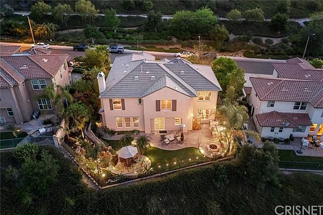 EXCEPTIONALLY PRIVATE AND IMMACULATE HOME IN THE PRESTIGIOUS COMMUNITY OF WESTRIDGE! This beautiful home is perfectly situated on a quiet cul-de-sac, with panoramic golf course and city lights views. The sprawling 4,129 SF floor plan includes 5 bedrooms, each with its own connecting bathroom, plus a loft, separate office/den + 3 car garage. So many well-planned features bring value to this stunning home: private gated courtyard entrance with a fountain; spacious living room and formal dining room; lush backyard with cozy seating areas, fire pit, waterfall, BBQ, and professional landscaping; separate courtyard entrance to office; gourmet kitchen with large granite center island and big pantry; upgraded wood cabinets; stainless steel appliances including built in refrigerator; spacious family room with gorgeous fireplace and views; upgraded travertine and hardwood floors, carpet, recessed LED lights and energy efficient lighting throughout. The main floor bedroom includes its own ensuite full bathroom and walk-in closet. The upstairs primary suite features incredible views, and spacious separate sitting room that could be used for fitness or an office. The primary bath offers a relaxing jacuzzi tub and 2 spacious walk-in closets. Custom window coverings throughout including plantation shutters. The floorplan allows flexibility for your family living, with the loft space perfect for gaming, movies, or an exercise room. The 3 car garage has ample parking and storage. The highly desirable neighborhood is known for its award winning schools, beautiful surroundings, and easy freeway access. HOA amenities include two resort-like pool areas, clubhouse, large park with basketball courts, picnic area, kids play area, tennis courts, gated neighborhood, and security patrol. This beautiful home in Valencia Westridge will not disappoint. With its gorgeous, lush landscaping, meticulous maintenance, and freshly painted inside and out, you can turn the key of this home and enjoy!! Make your appointment for a private viewing today.