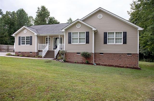 Welcome home to this beautiful well-kept rancher located on 1.50 acres in Dinwiddie County! Once you walk through the doors you will love the open concept floor plan this home has to offer! The great room boasts vaulted ceilings, fireplace and double doors leading out to the screened in back porch and deck! The kitchen features new vinyl flooring, spacious cabinets and counter-tops, decorative back-splash and recently purchased stainless steel appliances. All three bedrooms feature wall to wall carpet and the master enjoys a bit of privacy away from the other two bedrooms. The master suite has a nice walk in closet, large jetted soaking tub, separate shower and a double vanity! Outside you will find a huge yard with plenty of parking space. The Trane heat pump/central air and the duct work are NEW (the 10 year parts warranty should be able to be transferred by the buyer). If you want country living while still close to town this is the home for you! Call today for a private showing!