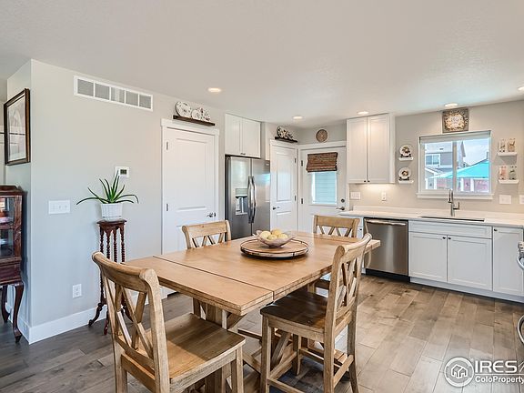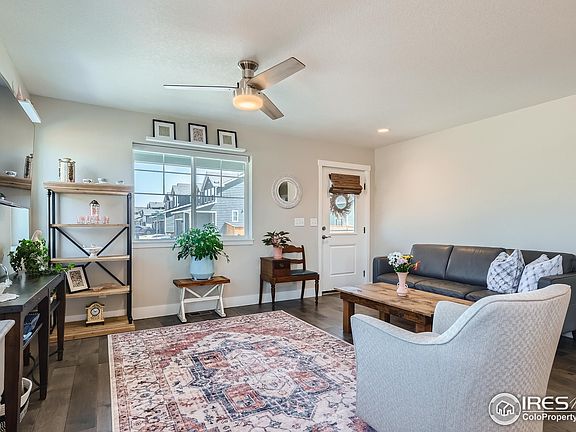 This Prairie Star home is better than new; all window coverings, ceiling fans, storm doors, landscaping, A/C and other upgrades are done. Enjoy the sunrise sitting on the extended covered front porch. Gaze out the kitchen window into the fully landscaped yard and oversized concrete patio. This efficient and inviting floor plan provides one level living with style & quality craftsmanship. Hardwood floors throughout, upgraded tile & lighting in both full baths. Both bedrooms have added windows, and are light & bright. The primary bedroom has an en suite full bathroom. There is plenty of storage in all the right places including pantry, linen, coat and laundry closets. The upgraded quartz counters, extra tall cabinets, stainless steel appliances, gas stove, side by side refrigerator, dishwasher, microwave and the full sized washer/dryer are all included. This home sits on a large corner lot with 2 car alley accessed garage. Residents have access to the Prairie Star Pool & Fitness Club, Community Gardens, Pickle Ball, Tennis, Basketball Courts and Walking/Biking Trails. The location is the best of both worlds, a small town feel and easy commutes to Boulder, Longmont, Loveland and Fort Collins. The builder, Mission Homes of CO, designs and builds the best efficiency homes in the state.