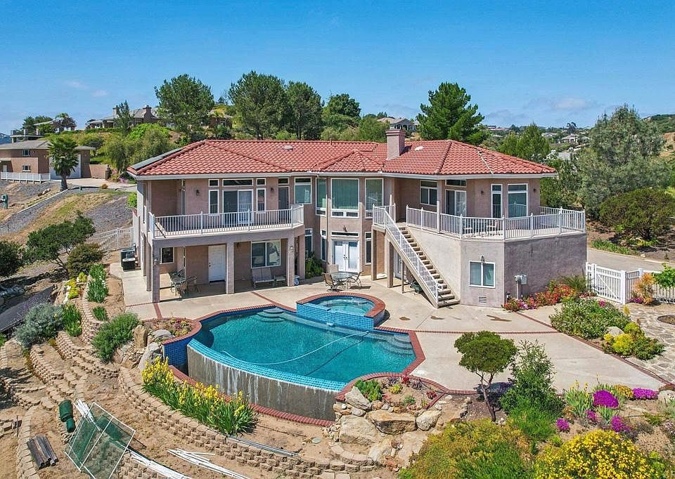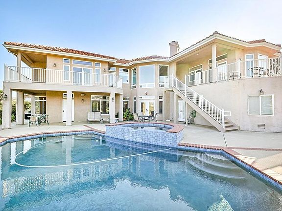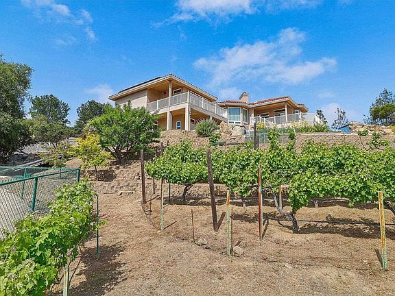 Stunning luxury residence in Rancho Palo Verde features heated vanishing edge pool and spa with breathtaking mountain views. This home is set on a picturesque lot with a vineyard and fruit trees, offering a serene backdrop of the Cleveland National Forest and Sweetwater River. Inside, enjoy the covered courtyard entry, airy elevated ceilings with large windows, two gas fireplaces. The gourmet kitchen includes a large island with butler sink, compactor, electric cooktop, double oven, melamine pressed birch cabinetry with adjustable shelves, and a pantry with a dumbwaiter to the garage. The kitchen opens to a deck with a propane plumbed BBQ area and access to water and electric. The primary bathroom features a wrap-around block shower, built-in laundry chute, jetted soaking tub, double sinks, and a vanity area. A large walk-in closet with built-ins connects the bedroom and bath. Downstairs, the great room has double doors leading to the pool and yard, and includes a wine cellar off the wet bar with a sink, refrigerator, microwave, and an outlet for a stovetop. The 3-car garage offers large walk-in storage and double doors to the backyard. Indulge in the exclusive amenities of this highly coveted community with convenient pickleball and tennis courts, a clubhouse, equestrian trails, and a gated entrance with attendants. Also included is access to Palo Verde Ranch’s private lake which is ideal for fishing, swimming, and boating, a clubhouse and fitness center. Experience the perfect blend of luxury and nature in this exquisite Rancho Palo Verde home.