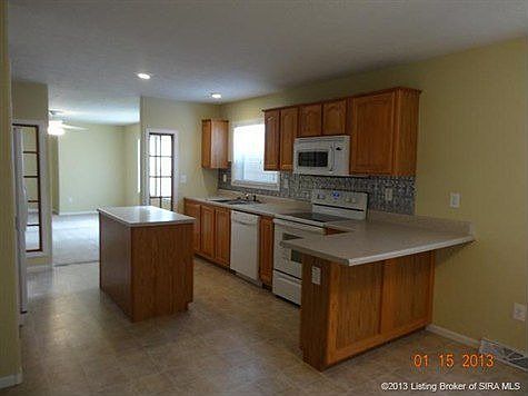 Almost like new Modular wood frame home. 3 bedrooms 2 bath with detached garage. Great buy on this home with loads of kitchen counter space and cabinets, Kitchen also includes range, refrigerator, dishwasher, microwave, Kitchen Island, breakfast bar, and super size pantry. All bedrooms have large walk-in closets. Master suite has his and her closets, garden tub and separate shower. Home has fresh paint, thermo pane windows, new heat-pump and split floor plan plus much more.\n\nInformation Deemed Reliable But Not Guaranteed. Information provided by the Southern Indiana REALTORS® Association, Inc. © 2010 SIRA Multiple Listing Service. All rights reserved. Brokered And Advertised By: Diamond Homes Real Estate, Inc. Listing Agent: Barbara M. Roth