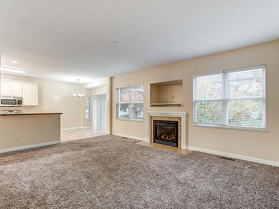 * **Interior Features**: The home boasts a spacious layout with a loft area, living room, dining room, and an eat-in kitchen. The kitchen is equipped with modern appliances, including a dishwasher, microwave, electric range, and refrigerator. The interior is finished with carpeting, and a cozy fireplace adds warmth to the living space. A partial basement offers additional storage options.