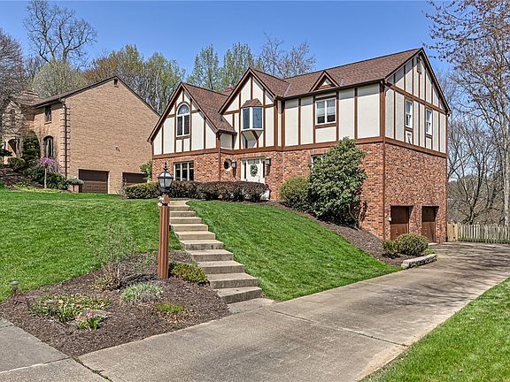 Desirable neighborhood near 79 & 279, NA SD & Bradford Woods Elementary…Well-maintained Tudor features Anderson windows, irrigation system & newer HVAC. Bright first floor offers seamless flow. Wide-plank oak floors grace the entry, kitchen, family & powder rooms. Kitchen features granite island with smooth-top range, XL 36” wall oven, & breakfast area with double bay window. Inviting wood-paneled den has built-ins. Family room has wainscoting & gas fireplace with black marble surround. French doors from family room & kitchen open to large deck. Upstairs, the spacious master suite boasts cathedral ceiling & sitting room; bathroom is a luxurious retreat with double sinks, soaking tub, separate large glass block shower & ample natural light. 3 additional generous-sized bedrooms, updated bath & laundry room complete the second floor. Storage is abundant. Lower level offers rec room with a walkout to patio, storage area & XL 2 car garage. Perennial gardens flank the fenced-in backyard.