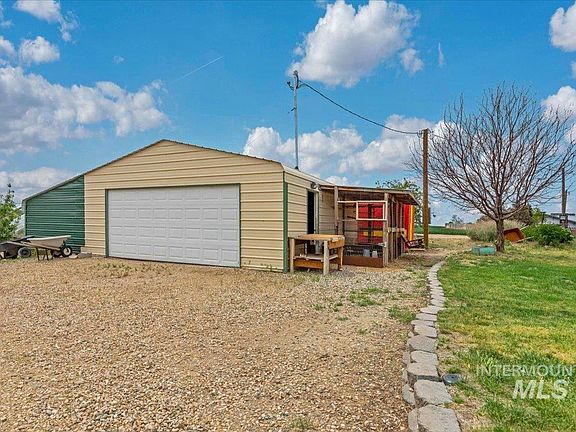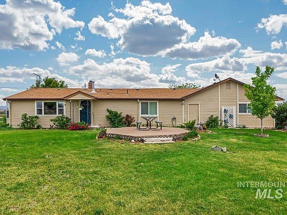 Beautiful updated country home on 5 acres with a 24x36ft shop with power in Parma, Idaho. The inviting 4 bedroom home sits at the top of the hill so you get incredible views from multiple vantage points throughout the home. Its open floor plan highlights a wood stove, updated flooring, a spacious kitchen with stainless steel appliances, a large dining room, a bonus room, mudroom, and a primary bedroom with an ensuite bathroom. The backyard is a great place to relax with its firepit, mature landscaping, and heated above-ground swimming pool. The hobby shed has heating and cooling so it would be an ideal office, workshop, or art studio. Other property amenities include the 2 storage sheds, multiple gardens, grape vines, and fruit trees. The land includes 4.12 water acres through the Wilder Irrigation District for irrigation. Previously run as a commercial game bird farm so there is income potential as well!
