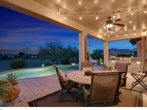 Remodeled Destiny floorplan on Copper Canyon GC on Vista hole #7. Enjoy your very own saltwater pool, gas fireplace, TV, outside speakers and built in bar-b-que in your backyard. You might never want to leave ! Kitchen has been remodeled with new appliances, granite and refaced white cabinets. Master bath also has been tastefully remodeled with quartz countertops, new mirrors and lights. 4 bedrooms which includes the casita for guests or your very own ''whatever you want it to be space''. Plantation shutters, tile throughout, garage w/cabinets and, of course, a fenced yard. What more can you ask for? Homes like this don't come along every day so don't delay!