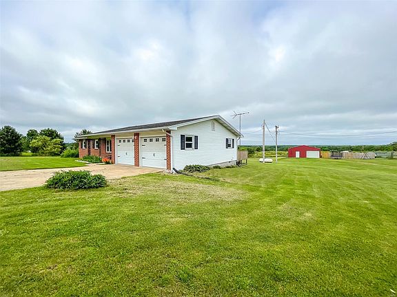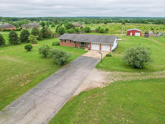 Great home, check! 45x30 shop, check! 1.57 acres just outside of town, check! All of this in one package, and under $185k?! YES! This brick-front ranch home has had many recent updates and is family friendly and move-in ready! It offers a spacious living room, an open concept dining & family room, roomy kitchen, large laundry room, master suite with attached 1/2 bath, 2 guest bedrooms, and a full hall bath. An attached 2-car garage completes the home, which has gotten NEW flooring, appliances, deck, and septic over the past 2 years. The sunroom and deck offers stellar views and unbeatable sunsets. The metal shop building is what every guy is looking for, complete with concrete floor, electric, & a separate driveway.