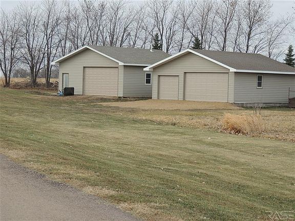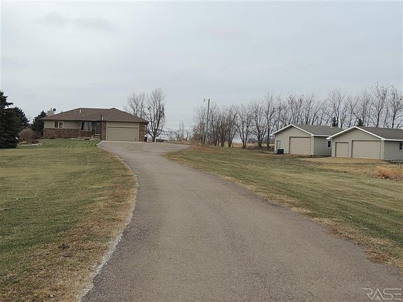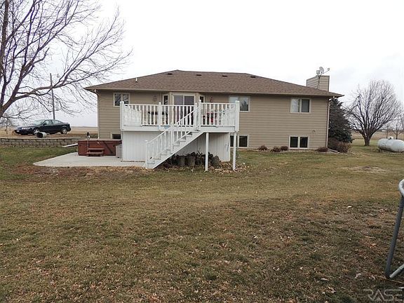 This 8.39 acre country home is close to Sioux Falls. The dining room has bay sliding glass door to a 16 x 27 deck w/ composite wood floor & storage underneath. 30 x 30 insulated, heated (new furnace, window air shop, and a newly built 30 x 30 garage for storage. Lower level family room has a wet bar and a gas fireplace. The theatre room is off the family room, large L shaped bedroom in lower level w/ two closets. The master bedroom has luxury vinyl tile floors and the other two bedrooms upstairs have hardwood floors. Beautiful sunsets from the deck with a cement patio below for a hot tub.New drain fields to the septic system. The kitchen has new counter tops with a under the counter sink.