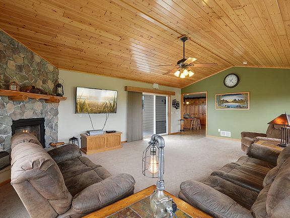Peaceful 2.5 acre setting with private view from the deck (maintenance free deck boards), plus an additional detached garage and garden shed. truly one level living with 36" wide doors & spacious rooms. Vaulted Dining Room w/ custom built in cabinet & new flooring which easily connects to the huge kitchen, oversized island w/ seating, wall of pantry cabinetry, tons of counter space and new stainless appliances. So man little upgrades like the built in speakers throughout, vaulted yet cozy LR, corner fireplace, custom window treatments, large mudroom, tons of storage & walk-in closets. If you need to relax, there is an oversized hot tub, sauna and entertaining room complete complete with twinkle lights & walks out to the patio and backyard. Plus there are 2 more BRs, full bath, perfect spot for a pool table and more. This home is the perfect place for you to work from home, relax, and enjoy life!