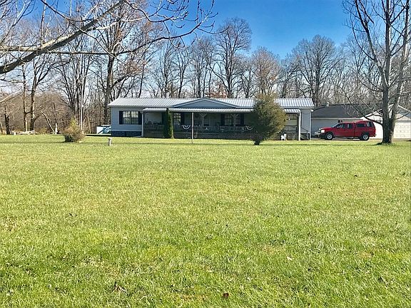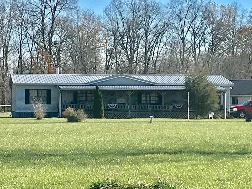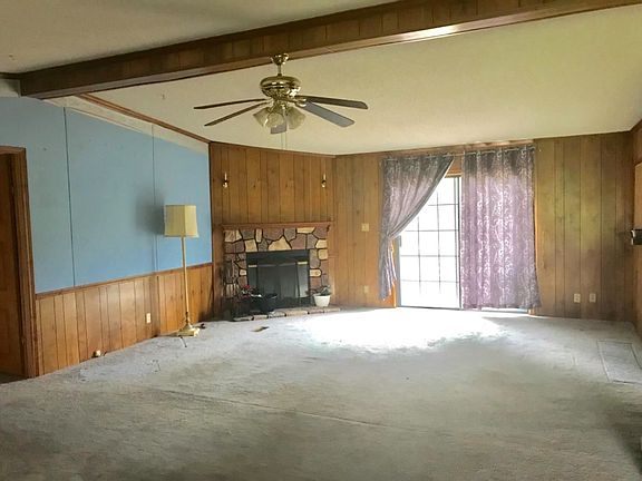 3 bed, 2 full BA Ranch with beautiful wooded setting and Fully Stocked pond on 7.83 acres. Open floor plan with vaulted ceilings, wood fireplace and walk-in master closet! Property needs some TLC but value in the lot and 4 car garage. This lot is amazing! Property being sold As-Is