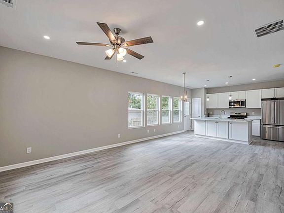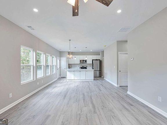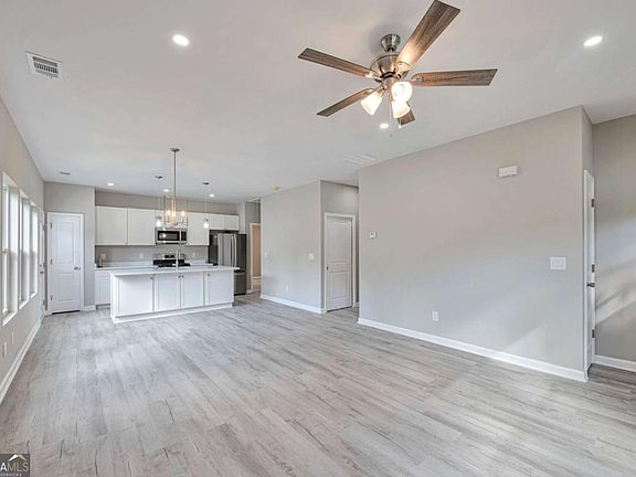 Welcome home to this beautiful 3-bedroom, 2 bath ranch-style bungalow, perfectly combining modern comfort with timeless charm. Thoughtfully designed throughout, this home offers an open concept floor plan ideal for today's lifestyle. Step inside to a spacious living room that flows seamlessly into the designer kitchen, featuring a large island with breakfast bar seating, white shaker cabinets, sleek quartz countertops, and stainless-steel appliances-perfect for cooking, entertaining, and gathering with family or friends. The primary suite is a relaxing retreat with a spa-like en-suite bath showcasing a double vanity, walk-in shower, and a generous walk-in closet. Two additional bedrooms and a second full bath offer plenty of space for guests, a home office, or family members. Enjoy outdoor living on the covered front porch or unwind on the side patio overlooking the surrounding recreation areas. With easy access to HWY 285, this home offers both convenience and style in one perfect package. Move-in ready and beautifully finished, it's the perfect place to call home!