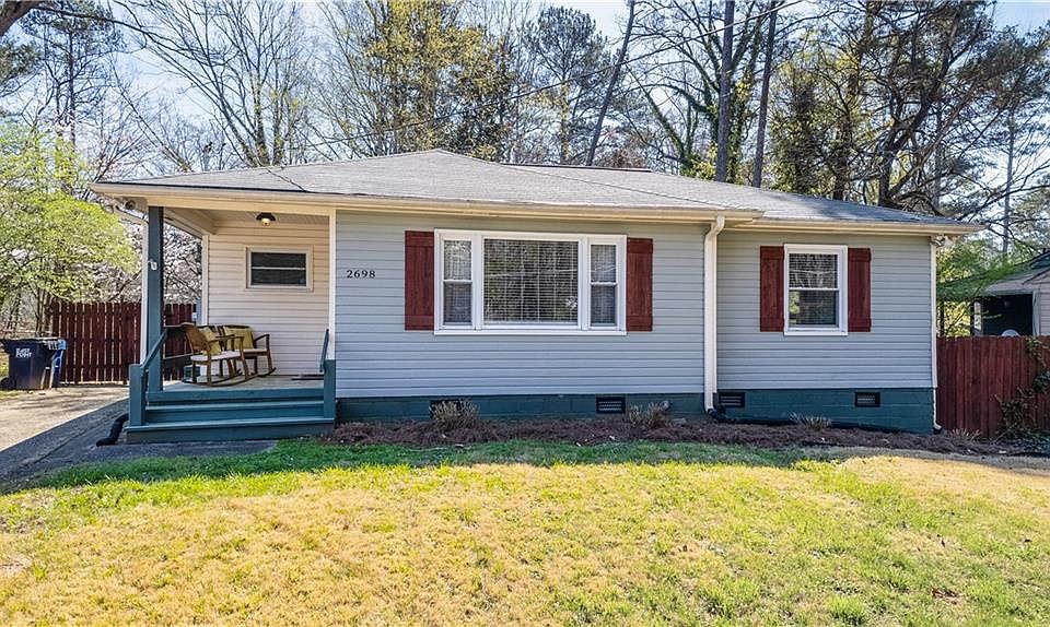 Don't miss out on this absolutely adorable 2b/1b bungalow! This cutie was renovated approximately 7 years ago and offers all of the bright and airy details that you will love. This home features granite counter tops, newer appliances, all newer fixtures and hardware, newer windows, exposed beam in kitchen and so much more. Large fenced and tree lined backyard, minutes from community park/playground. Located close to downtown East Point, Airport, Tyler Perry Studios, and all of Atlanta's major highways. A must see to appreciate all of the charm that this home has to offer.