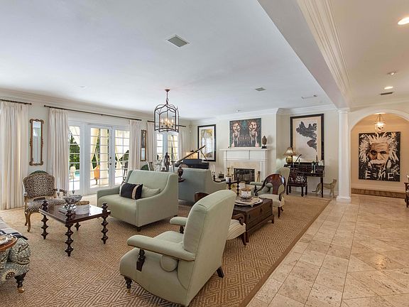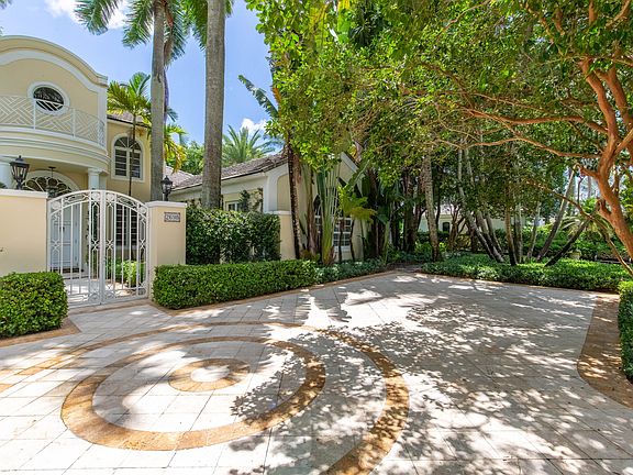 Located in the prestigious neighborhood of Kensington within the private gates of the Palm Beach Polo Club, this elegant estate is situated on over half an acre and boasts 8,033 sq ft of living space with 6 bedrooms, 7 full and 2 half bathrooms, a 3-car garage, charming courtyard entry, a resort-style outdoor living area, pool and spa. The custom floor plan is ideally configured for family and guests, featuring a poolside detached cabana suite, guest living quarters above the garage with private entry, and a second floor oversized guest suite with a sitting room. Encompassing the main floor is a large formal living room, formal dining room, den/family room, a generously sized guest suite with a full bath and walk-in closet, powder room, laundry room with dual washer/dryers, and the recently updated kitchen featuring Wolfe and Miele appliances, custom white cabinetry, and a wet bar area with a wine chiller. The east wing of the home hosts the lavish owner's suite, equipped with his and hers bathrooms and walk-in closets, a large sitting room/office, and access to both the pool deck and a separate secluded patio area. Up the main staircase you'll find two guest suites, each with full baths and entry onto the expansive covered balcony which offers stunning tropical views of the backyard. The second guest room boasts a large attached living room with lofty ceilings, a fireplace and a secondary full bathroom. In the west wing, a private hallway leads you to a service door to a quaint private patio area and stairs to the above-garage suite which includes a large loft/living area. The cabana guest house is the perfect poolside retreat, offering a kitchenette, living room, full bath and a walk-in closet. Just outside, there is another half bath as well as the covered summer kitchen. Extending down the length of the main house, the expansive covered patio hosts multiple sitting and dining areas, a perfect area to take in the beautiful scenery and blissful atmosphere.