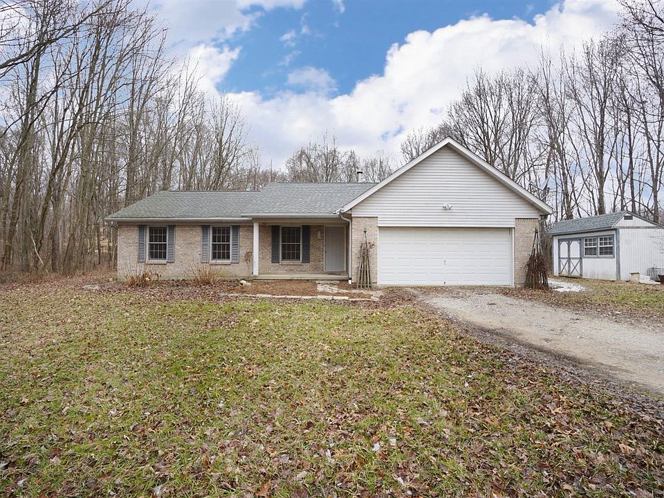 Situated on 6.25 acres with long driveway & mature trees leading you back to the property. The interior is neutral & move in ready with a formal living room, family room w/FP, casual dining space just off the kitchen w/walkout, kitchen boasts nice counter space & pantry, cathedral ceilings, master bdrm w/adj bath, stocked pond w/dock & gazebo.