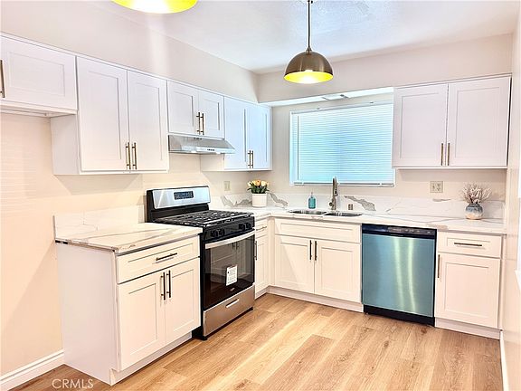 Welcome to this charming 2-bedroom, 2-bathroom condo in the desirable community of Sun City. The kitchen has brand new cabinets, New countertops. New dishwasher, New stove, new range hood and light fixtures. Upgraded bathrooms with New toilet & faucet. New floors. Fresh paint inside. HOA covers water. Easy access to freeway. Must see! This is 55+ community, anyone can buy this property but the resident(s) need to be 55+.