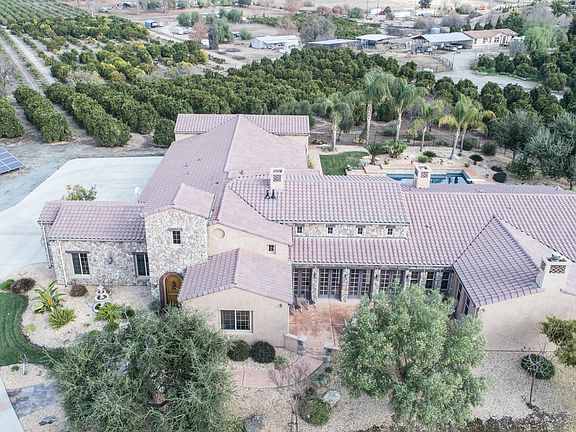 CALL LISTING AGENT DIRECT - JACKIE HILLEN 559-999-8088 Fall in love with this Tuscan Inspired Villa on the outskirts of Porterville. This magnificent home situated on 9.71 acres comes with a spacious and open floor plan. The warmth of this home can be felt as you drive up the private drive. Once you walk into the home you’re greeted with expansive ceilings, majestic rock accents, gorgeous features and breathtaking views. This 4900 square foot estate offers a split floor plan and an abundance of storage! The master suite is oversized with a gas burning fireplace, walk in closet, and fabulous master bathroom. The additional bedrooms each have their own bathrooms. There’s an attached casita with bathroom and its own entrance from the exterior of the home. The office / game room offers a built-in desk, cabinets, oversized seating, and French doors to the fabulous backyard. The formal living room offers an abundance of windows and French doors showcasing the beautiful views and swimming pool. Near the formal living room is the Library with custom bookshelves, and tons of natural light. The kitchen is incredible with commercial grade appliances, extremely large pantry, an abundance of counter space, and access to the secret room. The entire home is graced with custom built in cabinetry and fabulous accents. The fenced backyard offers plenty of room for entertaining with two covered patios, a built-in fireplace, a beautiful swimming pool, and incredible views of the nearby foothills. This fabulous home offers a 3-car garage with 1 car oversized for your RV. The garage offers an abundance of storage inside the garage, and with a staircase above the garage for additional storage! All this, plus OWNED SOLAR and producing citrus! Call for your private tour, this estate is superb!