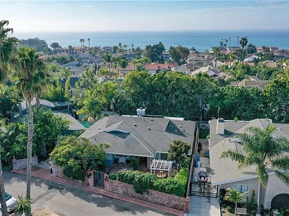A HIDDEN GEM in Capistrano Beach. OPTION TO ADD STAIRS TO GARAGE AND GUEST UNIT DOWNSTAIRS. 4 bedrooms, 3.5 upgraded bathrooms, which includes a fully equipped guest quarters. This Single Story exquisitely charming custom home is located just under a mile to BEACH ACCESS. Private end of the road, personally-gated compound on a private street minutes to all the city amenities. CAR COLLECTOR'S GARAGE, with possible 4+ car garage parking, (garage is 1109 Sq. Ft. with 91 Sq. Ft. storage room). Possible RV and or BOAT STORAGE. This Entertainer's Dream Home has the most fabulous CHEF'S KITCHEN and pantry that is to die for. Beautiful 3 bedrooms/2.5 bathrooms all on one level with lovely great room and fireplace. Attractive barn doors on the main house bedrooms, plus the most gorgeous master bath and huge walk-in closet off the master suite. The lower level guest suite downstairs has private access, with 480 sq. ft. of living space with living room, bedroom, full bath and laundry hookups. This suite has the ability to comfortably live full-time for returning offspring or retired parent. All Bathrooms have the customized popular bowl sinks with extremely good taste and finest of finishes. Wood floors throughout. Love the private enclosed, brick courtyard entry with water fountain. More than 10,000 bricks all around the property creating a charming feel. Private street of 6 homes with no association! This is a rare and special find!!!