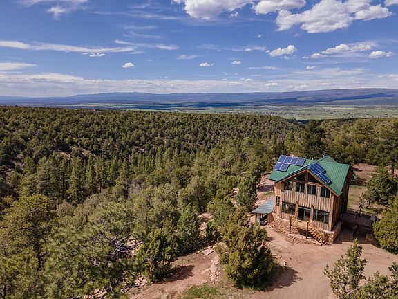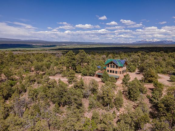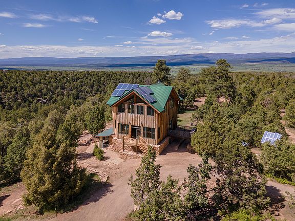 Situated on 40 acres in a peaceful juniper and pine forest, this custom mesa home provides the ultimate privacy and freedom. Wrapped in glass windows, this home has gorgeous 360 degree views of the surrounding mountain ranges including the La Sals, Lone Cone, and Sneffels Range. This private mesa retreat has ample solar exposure pooling in the sunshine all day long creating a light and warm atmosphere. This home has a thoughtful open kitchen, living, and dining floor plan on the main level with sleeping quarters upstairs. The primary bedroom is spacious with high vaulted ceilings and a wall of windows that displays the most colorful sunsets to the west over the La Sals every evening. Enjoy the wildlife, scenery, and fresh air throughout the day with your choice of three separate deck spaces. Wood and stone tiled floors, stone countertops, new stainless appliances, custom windows and high ceilings round out the beautiful finishes and details in this home. Save money on electricity, as this home has its own solar powered system with recently upgraded operating system, panels, and battery storage. This quiet sanctuary on Wright's mesa is located just a few minutes from the town of Norwood amenities, shops, eateries, and watering holes and less than an hour from world class skiing in Telluride. The property comes with ample storage space and greenhouse structures plus 40 expansive acres to bring your vision to life whether it is an equestrian setup, farm animals, yurts, gardening, artistry or craftsman workshops, RV or toy storage, and more.