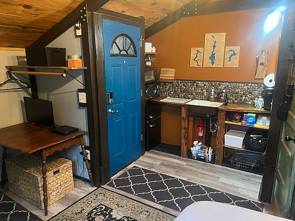 There is a large house on the property that has three separate units. This unit is the "Studio Close to Downtown" which we often refer to as the Kootanai Cabin. You will walk to the right of the house and go past the laundry room to the back of the house for the entry. There is a code entry. The code on the door lock is changed for each new guest. The Kootanai Cabin has a queen bed, kitchenette and bathroom with a stand-up shower. This room has its own mini-split heating and cooling independent of the rest of the house. There is access to the internet and a TV in the studio. Kitchenette is stocked for short to medium stays. The laundry room entrance is on the right side of the house. The laundry room has hours of operation but tenants may need to work out a schedule because of different work hours. The neighborhood is a quiet residential neighborhood on the outskirts of Coeur d' Alene. Walking distance to a 9 hole golf course and restaurant. Deer and turkey are regular guests walking through the yard! Lease terms are flexible from short term to monthly. This property is also rented as a vacation rental, so length of the term will need to accommodate other reservations. The current window of availability is Sept 23 to October 23. There will be a non-refundable pet deposit if pets are included. There will be a $200 cleaning fee. No smoking is allowed inside the property at all. Guests will have access to the laundry on site and BBQ grill, but need to keep both areas clean. Background check will be run on applicants for credit, criminal and eviction history.