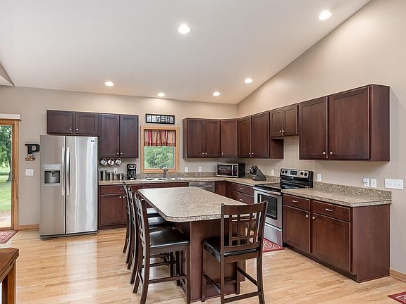 2009 Bullock Creek area ranch home with just under 1 acre of land. This home offers an open concept kitchen, dining room and living room- all with hardwood flooring and a vaulted ceiling. The kitchen has a work island, lots of cabinets, stainless appliances and a patio door that leads to the backyard deck. Three main floor bedrooms including a master with a dedicated full bath that has a ceramic shower, double vanity and walk-in closet. Main floor laundry room. This home has a full basement that is plumbed for a bathroom & an egress windows. 2+ car garage, shed and plenty of parking. City water, natural gas and within close distance to schools, great Tri-City location. This home is in move-in ready condition!