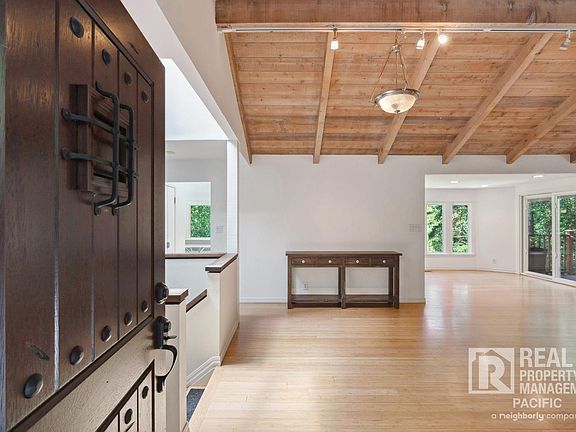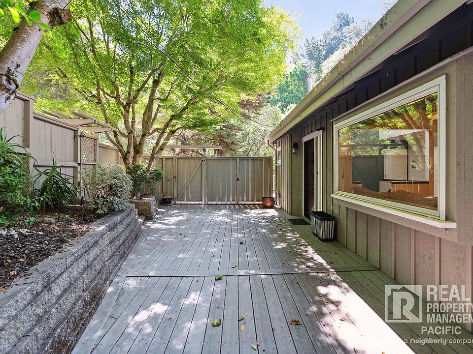 Welcome to this lovely 4 bedroom indoor/outdoor haven in desirable Piedmont Pines. The front patio and wrap-around deck, all sheltered by mature Japanese maples, create a serene environment for gatherings. The main level boasts natural wood vaulted ceilings, bamboo floors, and a beautifully tiled gas fireplace, enhancing the spacious living and dining areas. The bright, updated kitchen features a cozy breakfast nook, making it a delightful space for morning meals. Completing the main level is a convenient half guest bath and easy access to the expansive wrap-around deck. Descending to the second level, you'll find three well-appointed bedrooms and two and a half baths. The large master suite includes a dressing room with cedar closets and ample drawer space, plus a separate half bath for added convenience. A spacious laundry room with additional storage ensures functionality and ease. The lower third level offers a private one-bedroom au pair suite, complete with a kitchenette, living area, and separate entrance, perfect for guests or extended family. Situated on a quiet street with stunning canyon views, this home provides a peaceful retreat while being an entertainer's dream. The house is conveniently located with easy access to Highways 580, 13 and 24. Easy access to great shops, award winning restaurants and services in Montclair, Glenview and the Dimond District including multiple grocery stores and a public library. You are also a very short drive from multiple trailheads and the entrance to Joaquin Miller Park and Reinhardt Redwood Regional Park. Incredible location and property! Oakland law prohibits rental discrimination based on criminal history per the Ronald V. Dellums and Simarashe Sherry Fair Chance Access to Housing Ordinance No 13581 C.M.S. (O.M.C. 8.25) *We are an Equal Opportunity Housing Provider and follow all federal, state, and local fair housing laws.*