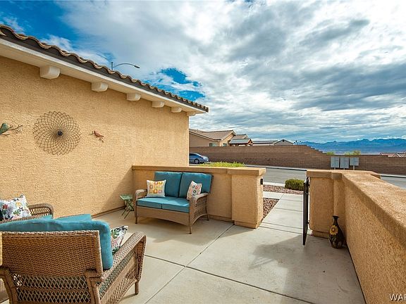 Welcome to your new home located in the highly desirable Bilbray Ranch. This home comes partially furnished, with acceptable offer! Upon entrance is the great room with oversized windows and vaulted ceiling giving you that extra open feel. The kitchen is spacious, equipped with top of the line appliances also featuring a separate dining area and breakfast bar. Master bedroom has vaulted ceilings and features a large walk in closet and a step in closet, master bath dual sinks, large soaking tub and step in shower. This home is tucked up against the mountains of state land. Enjoy your time spent on your covered patio with the unobstructed mountain views from the back. In the front you have a courtyard perfect for the view of Bullhead City, just across the river and seeing the casino lights of Laughlin. Bring your outdoor toys, this lot has plenty of space for parking it all on the side of your home. Call today to schedule your private showing.