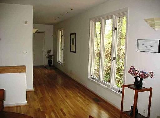 Quiet elegance, This brick and cedar home has architecturally designed to merge into its private wooded hillside site overlooking a small creek. The open floor plan features an expanse of windows, beautiful hardwood floors and living areas that flow graciously into one another. Master suite is on first floor. Lower level space is flexible-3 bedrooms or a combination of bedrooms, family room and study, plus full bath.