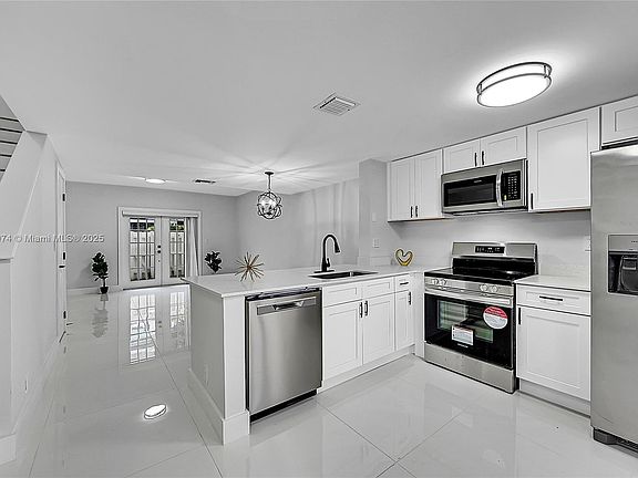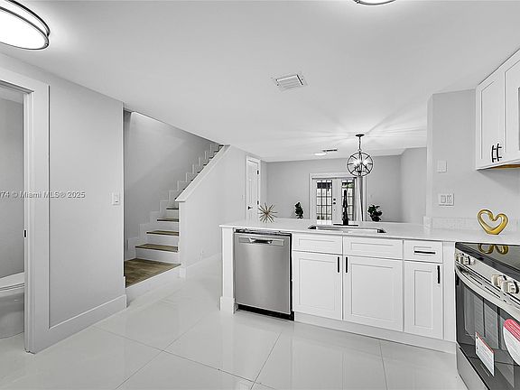 Updated 2/2.5-Bath Townhome —1.5 Miles from the Beach! Enjoy coastal living in this bright open layout with porcelain floors, modern finishes, plantation shutters, French doors, newer AC and a private fenced patio. Upstairs offers a full-size washer/dryer & attic storage; pus storage area under stairs. Park right in front of your door with 2 assigned spaces + guest parking. Community features pool + optional dock space with no fixed bridges to the ocean via the Hillsboro Inlet. Dock ownership is separate, with priority given to Sun Harbor owners to rent or purchase. Dock will be available early Nov 2025 for 36 ft long boat (10 ft & 6 inches wide). Low $218 monthly fee - covers water, sewer, trash & landscaping. Eligible for FHA & No special assessments & assoc. has reserves!