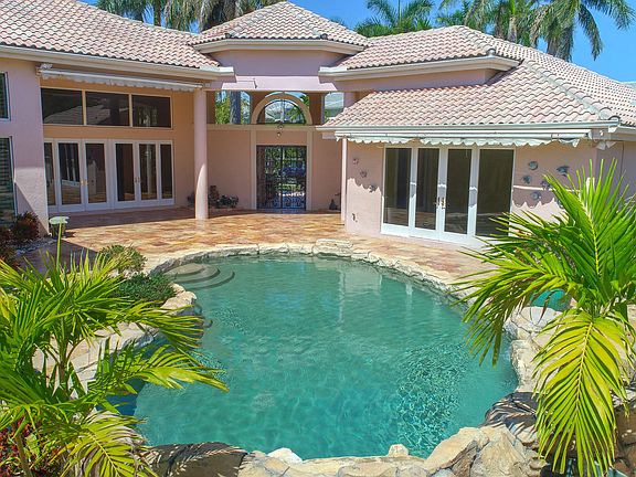 THE SELLER WILL CONTRIBUTE $35,000 TOWARD THE MANDATORY MEMBERSHIP FEE AT CLOSING!!! This fabulous courtyard estate features 5 bedrooms, 4 full baths on one of the best lots in the award winning country club at Broken Sound. The main house enjoys an open floor plan, 18' ceilings,an abundance of windows providing a lot of natural light, gorgeous marble floors, gourmet kitchen, stone fireplace, a lushly landscaped pool with an amazing waterfall on an over sized lot. This incredible estate encompasses a one bedroom/one bath guesthouse, and a 3 car garage. Whole house storm protection. Largest lot in Grand Oaks. A must see!