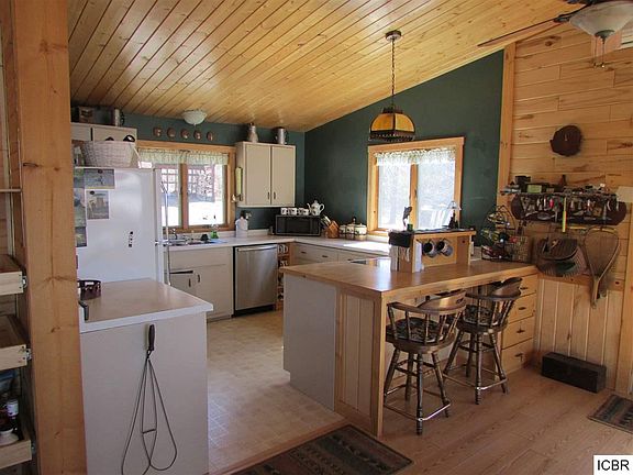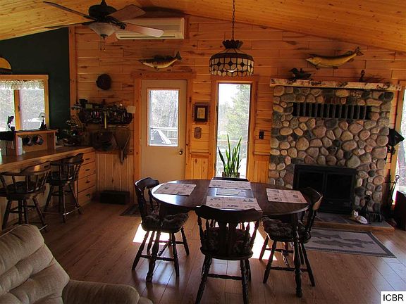 Sportsman's haven with nearly 75 acres and 2,666 feet of lakeshore on private Scrapper Lake. There is also 2,888 feet on Balsam creek to enjoy. Relax after a successful day of fishing or hunting in the adorable 3 bedroom home. The home boasts an open floor plan with panoramic lake and wildlife views, wonderful maintenance free deck, T & G vaulted ceilings, Pergo plank flooring, thermal storage heat, stone fireplace, main floor laundry and so much more. The master is all plumbed for a bath. The lower level consists of two bedrooms, ¾ bath and a family room. (The lower level bedrooms do not have closets) The 2+ car heated garage includes a carpenters dream 18X24 workshop complete with an air filtration system. Outside you're sure to enjoy the charming sauna building w/changing room, plus a garden area w/shed and a fish cleaning house. There are trails cut thru-out this beautiful acreage and tax forfeit land surrounds 3 sides plus you can boat into Balsam Lake from the creek. Cont.