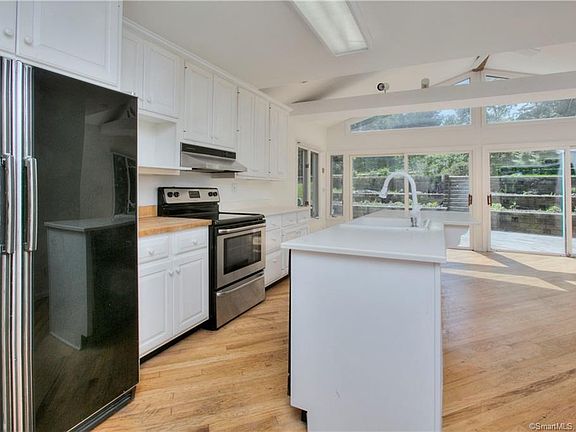 Move right in to this well maintained 4 bedroom, 3 bath home on New Canaan's west side. Bright living room with fireplace, adjacent dining room, eat-in kitchen with island and cathedral ceiling breakfast room wit a wall of window overlooking the back property. Glass sliders leading to outdoor terrace with pool. Home sits high for maximum natural light. Master bedroom with bath. Three additional bedrooms and two baths. Tremendous potential with opportunity to move right in, renovate on high dry land in a convenient location close to town, schools and Merritt to build your dream home.
