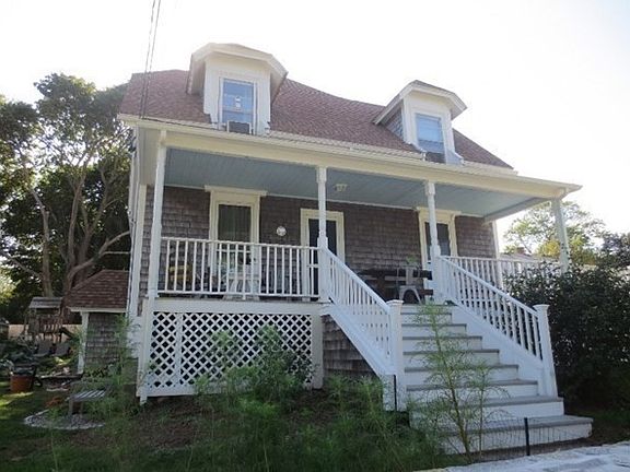 This beautifully renovated and maintained 2 bedroom condo has stunning water views, sunrises and moon rises that you can view from your expansive private front porch and several interior rooms, including a walkout basement gym and office area. Located a short walk from Plymouth Yacht Club, Plymouth's downtown and waterfront, numerous restaurants, shops and entertainment and 1 block from Nathaniel Morton Elementary School. The unit has hardwood flooring, some floor to ceiling windows and high ceilings. There have been numerous updates including the kitchen with banquette, a gorgeous renovated bath with clawfoot tub, gutters, shelled driveway and walkways. The impressive stone wall enhances the unit as well as the lovely plantings and Koi pond. Enjoy farm to table living with an organic garden of edibles, perennials, herbs & fruit trees. Deleaded certificate on hand. Masks please