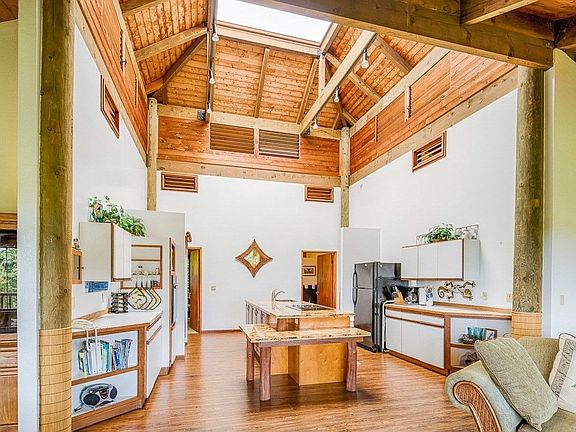 Scenic pastoral and ocean views from this custom cedar pole house. The property is currently being used as a vacation rental, but would also make a lovely single family home.There are walls of windows with unobstructed views across the beautiful pastures in front of the house. Cathedral ceilings - including a frosted glass cupola in the kitchen make the interior of the house light and bright. The cupola is also vented on all 4 sides to add excellent air flow in the house. The kitchen is open to the living areas - and features brand new granite counters. There are also easy care plank waterproof vinyl floors in most of the living areas. Solid cedar construction and high cathedral ceilings, over 1000 sq. ft of covered decks to enjoy the beautiful views, a spacious master bedroom suite on one side of the house and two extra bedrooms and a bath on the other side of the house are other special features of this lovely home.There are lots of possibilities for expansion of this house. There is currently a large storage room located under the house and lots of open area that is currently being used for parking. However, this area could be enclosed to add additional rooms, baths, etc. Located just 10 minutes from Hilo, just off the Onomea Scenic route, close to the Botannical Gardens, the Smoothy Shack and Onomea Bay. This lovely home can be sold as a turn key vacation rental. but the owner is not requiring that a buyer purchase it as such.