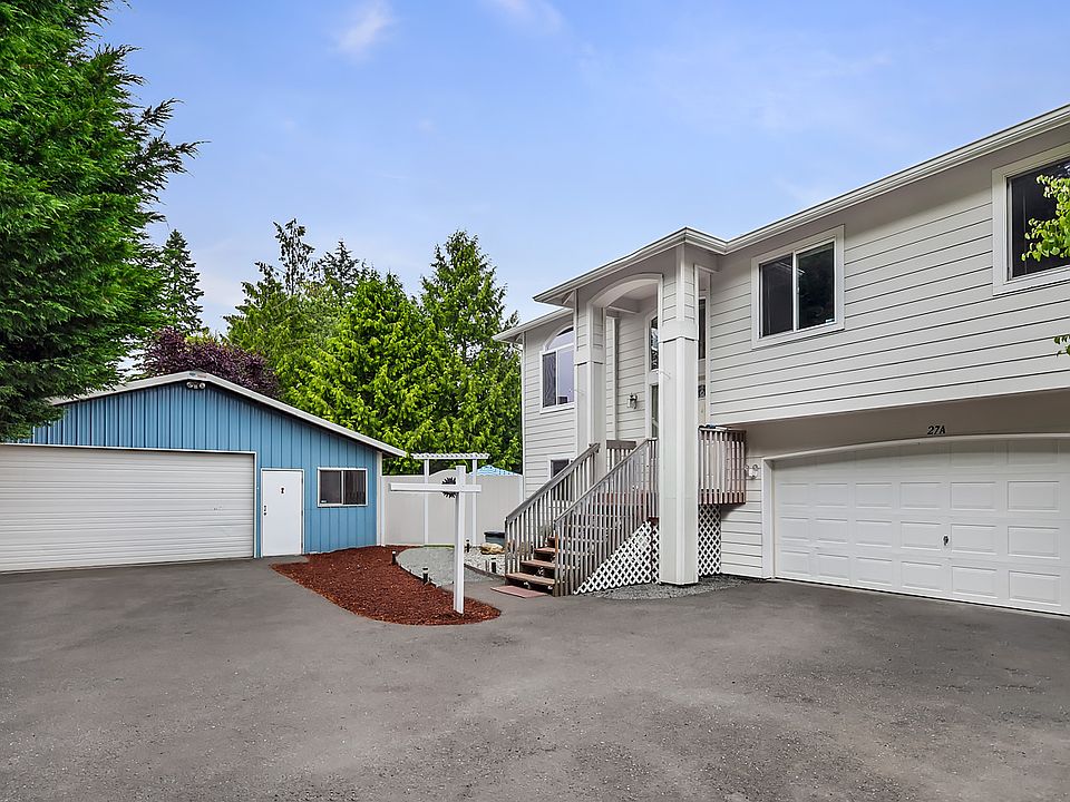 Fantastic & spacious 4 bdrm, 2.5 bth & 4 covered spots (2 - attached garage & 2 - detached garage/shop + storage) on private street. Great-Room concept in Kitchen/Dinning/Living areas; Home also offers - vaulted ceilings, all apps included, cozy gas fireplace, security sys, man-door in garage, fully fenced + sprinkler system in yard & patio for entertaining or a pool - Enjoy the private backyard oasis. Award-winning Mukilteo School District! Minutes to Boeing, freeways, ferry, shops & more