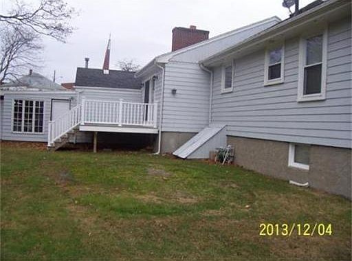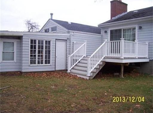 Cape -. Living Room w Fireplace and sliders to deck - Formal Dining Room. Eat-in- Kitchen & Bath & 2 bedrooms on 1st floor. One large room on 2nd level- could be another bedroom.,large 2 stall heated garage attached to house. Good size yard. Close to highway and schools. Most windows new in 2006. . Electric heat in room on 2nd floor.