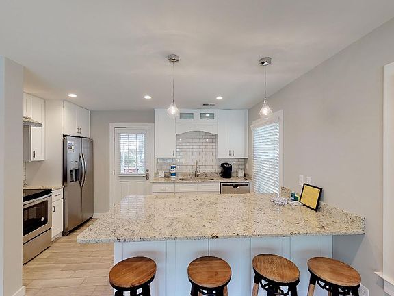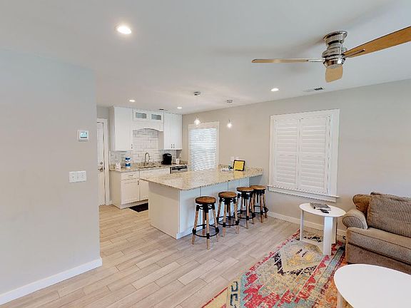 Wonderfully renovated pet friendly, two bedroom, one bath ranch style home with an updated kitchen! Located within a block of the beach access path on 21st Ave (have to cross Palm Blvd). The screened in porch has a washer and dryer. The large fenced in back yard is perfect for a little dog to feel quite at home.. Pet friendly. Tenant occupied through April 30th. Notice required for showings. Available May 1 Tenant occupied through April 30th. Notice required for showings. Available May 1st. 1 year lease.